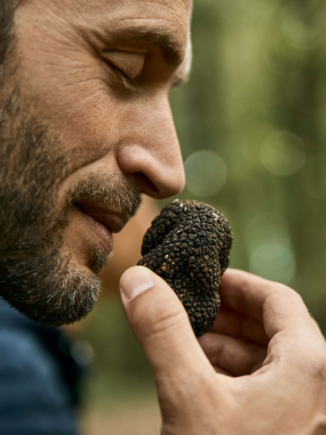 Once the dogs find their quarry, the thrill of discovery is palpable. The freshly unearthed truffle is gently cleaned and passed around, allowing everyone to appreciate its earthy aroma and smooth texture — a true “diamond of nature,” as the locals call it. The find — a black truffle — is known for its rich, robust flavour, perfect for enhancing the most sophisticated dishes.