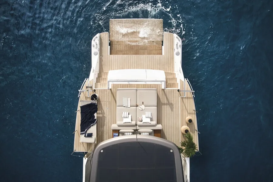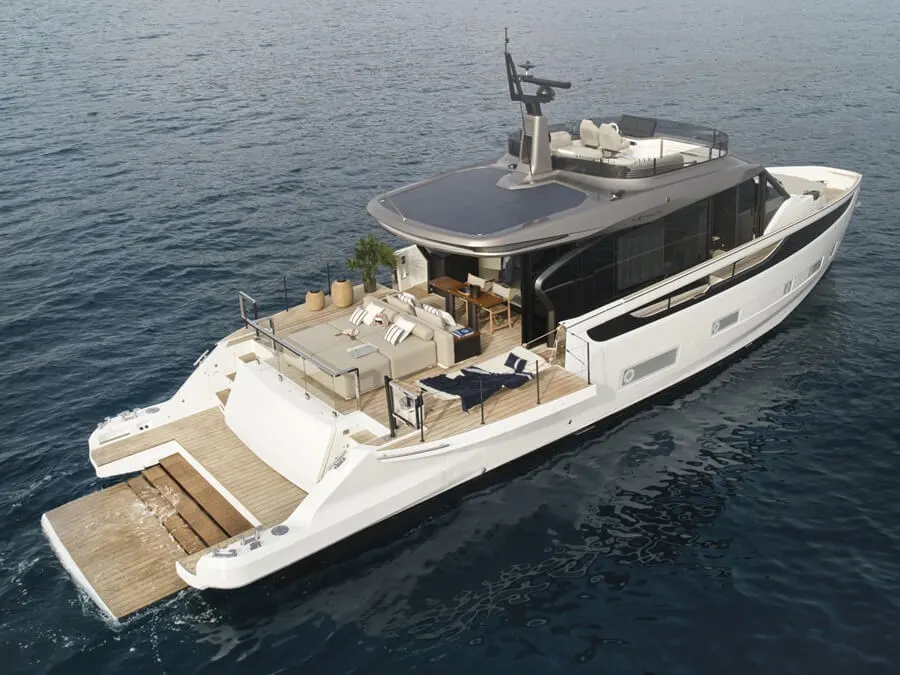 “The idea of using the end of the deckhouse as an area for solar panels is an excellent opportunity to support battery recharging during the day, at anchor,” Lantero points out. “It can be an additional guarantee to keep the batteries charged, even when leaving the boat in the marina for long periods.”