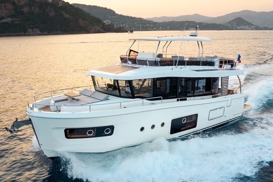 “It’s a break away from the motoryacht world – this is a passagemaker,” says Robert Chaffer, Beneteau’s Motorboat Marketing Product Manager for the Gran Turismo and Swift Trawler lines, as we approach the new Swift Trawler 54, which debuted at the Cannes Yachting Festival 2024. “Swift Trawlers are not designed to sit in the marina, but to navigate, travel and explore.”