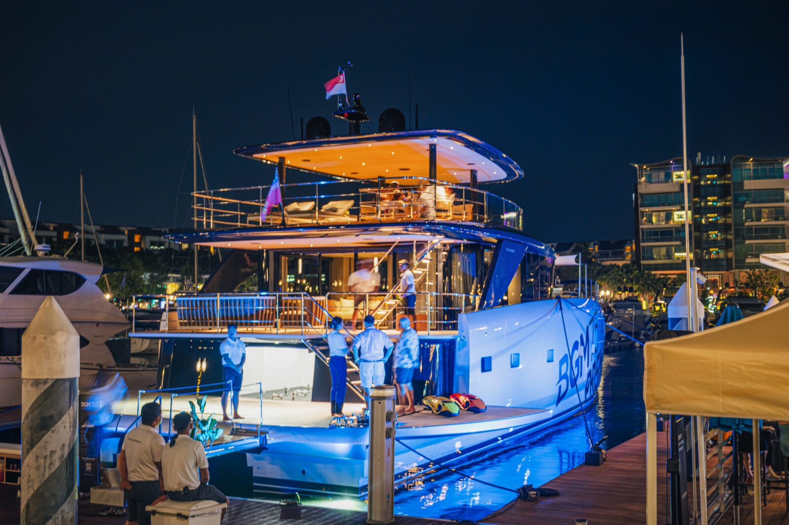 Sanlorenzo Asia-Pacific hosted the Asia-Pacific premiere of Bluegame’s BGM75 multihull motoryacht in Singapore last weekend. Held at ONE°15 Marina Sentosa Cove, the regional debut of the BGM75 included a dockside presentation accompanied by live music, followed by private tours and sea trials of the 22.7m multihull motoryacht.