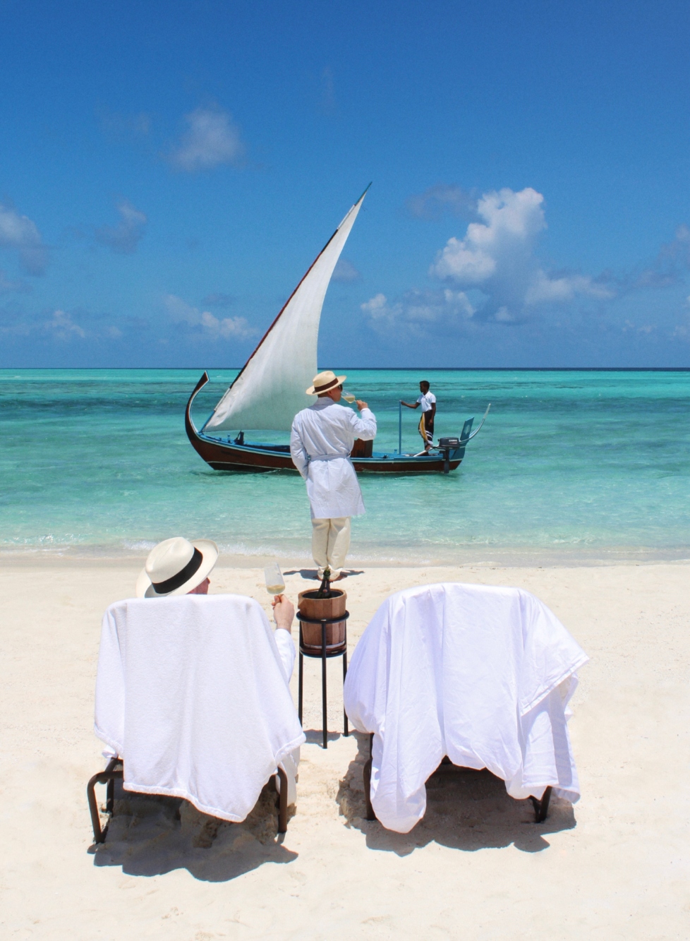 Shoes are not exactly discouraged, but let’s just say the sandy paths and teak walkways don’t love a stiletto. Embrace the barefoot mandate and channel your inner boho billionaire.
