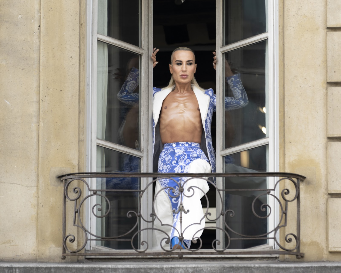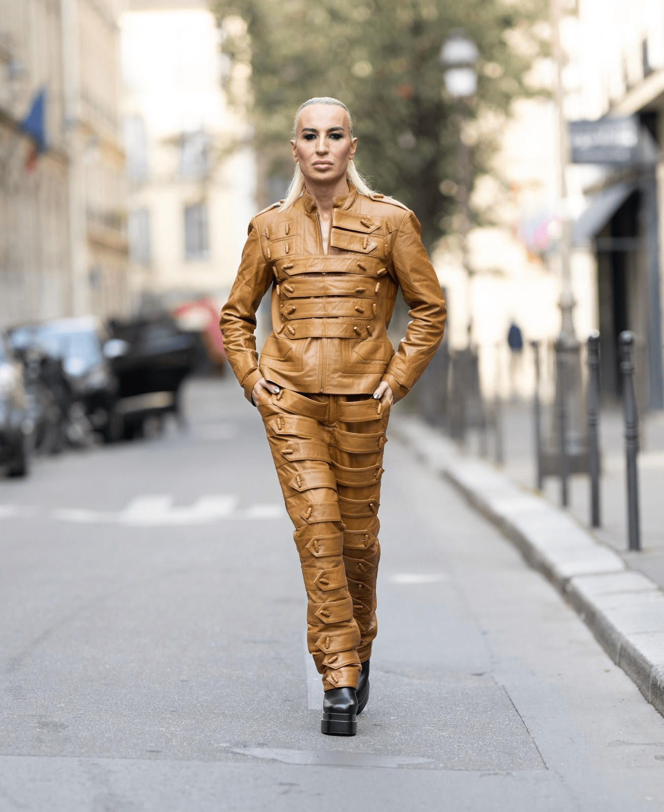 The pairing of Elton Ilirjani’s boundary-pushing persona with Malan Breton’s celebrated designs at Paris Fashion Week not only captured the attention of street style photographers but also underscored a powerful narrative about diversity and artistry. It demonstrated global influence in contemporary fashion. As both individuals continue to expand their creative impact, their collaboration serves as a vibrant testament to fashion’s evolving landscape. Photos by Arun Nevader.