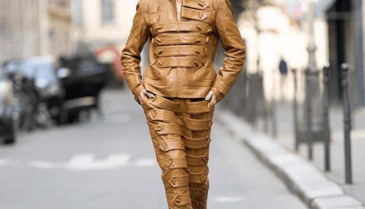 Ilirjani posed in a meticulously curated photo shoot featuring two prominent ensembles from Malan Breton’s latest collections. One look saw him sporting a chic tan leather two-piece outfit, exuding contemporary sophistication and texture. Another featured a sharp suit in contrasting white and blue, demonstrating Breton’s versatile tailoring and avant-garde approach. These looks perfectly encapsulated the spirit of street style – unexpected, high-fashion, and effortlessly cool amidst the chic Parisian backdrop.