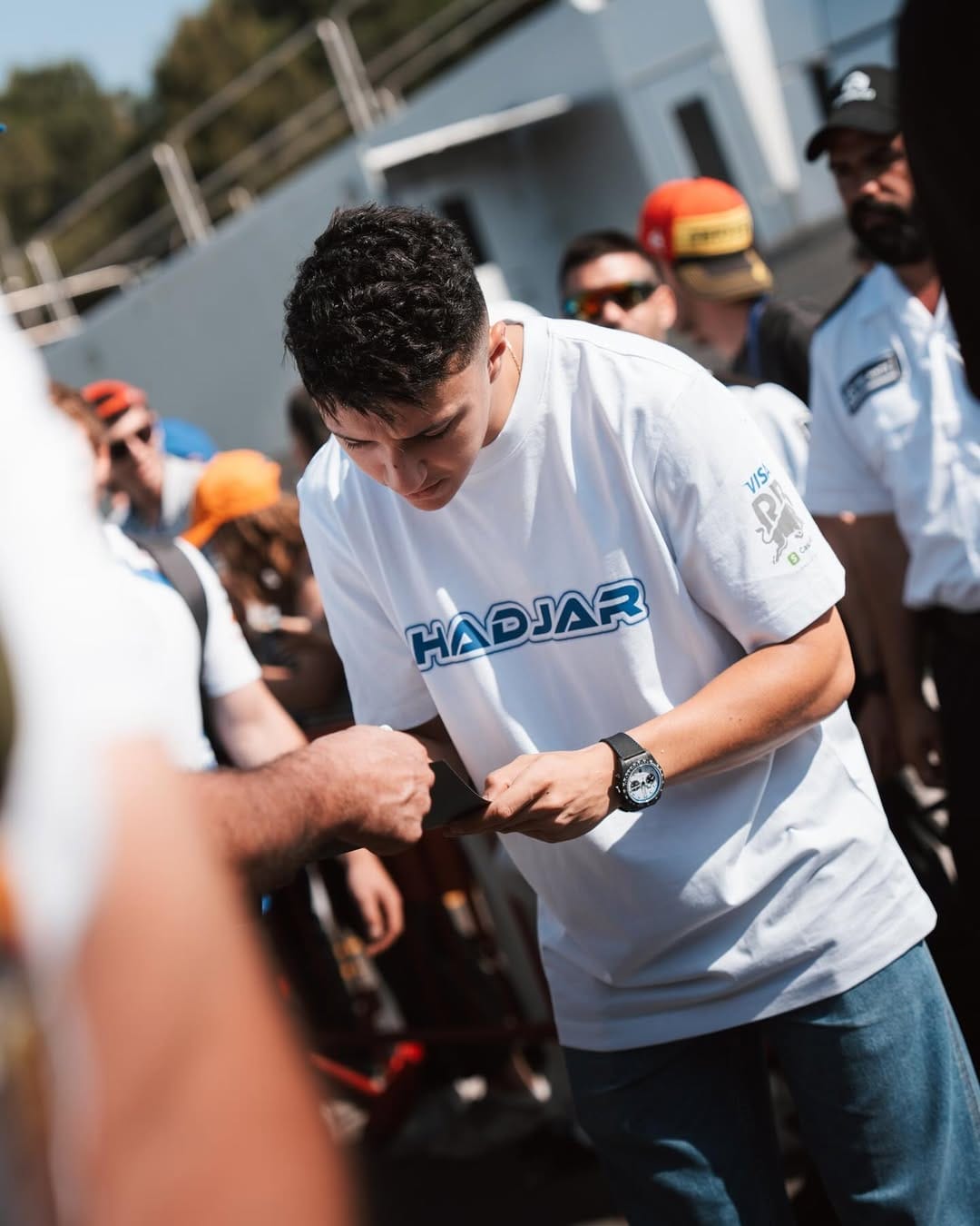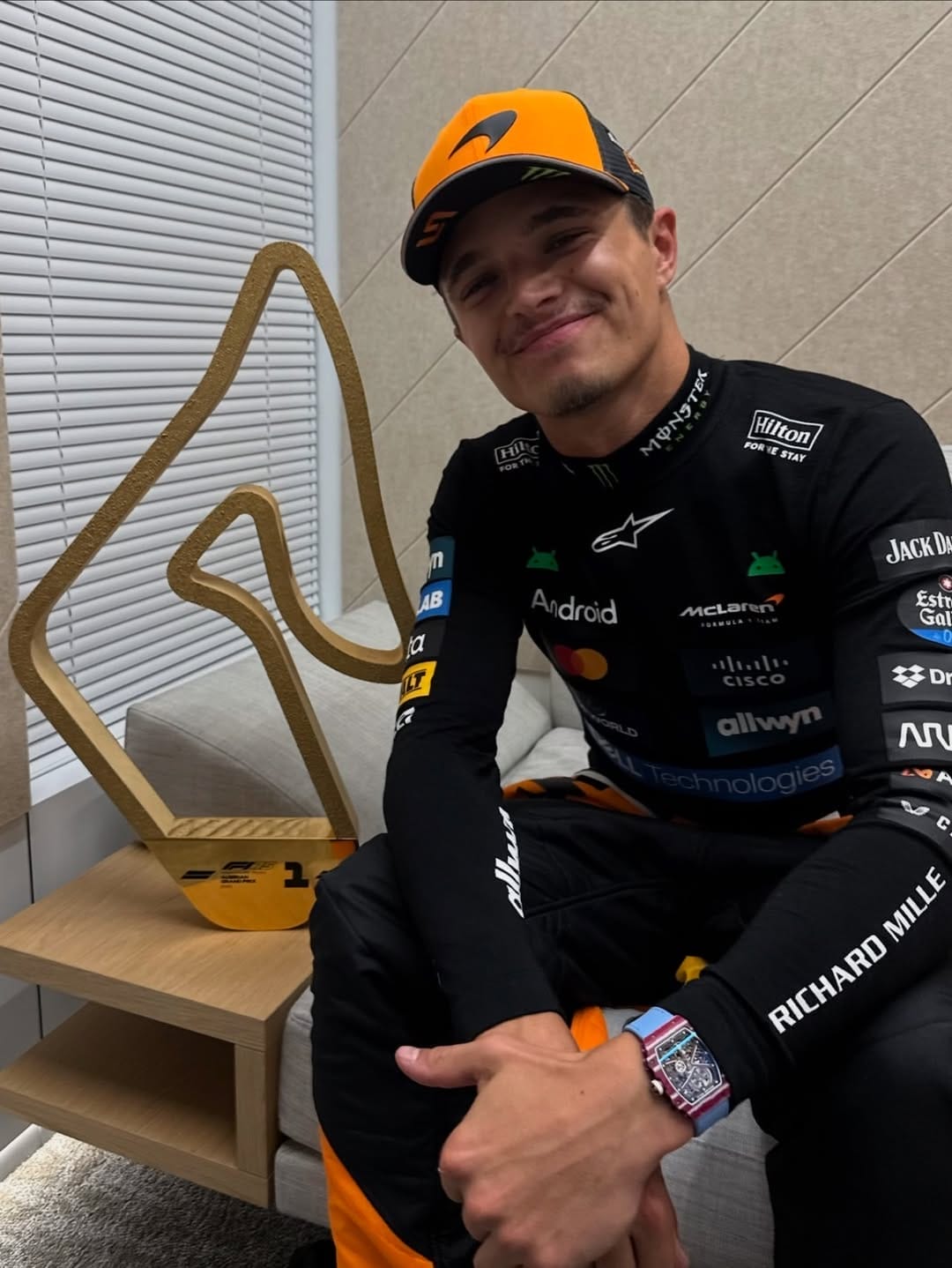 Colours are a thing for Lando Norris it seems — papaya (his official team colour) and the Richard Mille RM67-02 Automatic Extra Flat “Mutaz Barshim” on his wrist.
