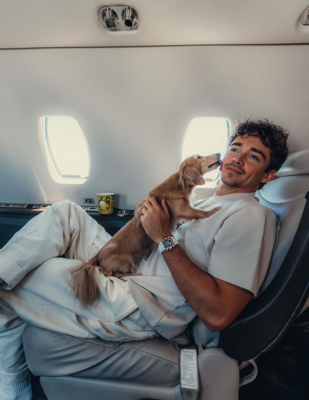 Leo the dachshund maybe the darling of this picture, but not for watch nerds after Charles Leclerc was spotted wearing the Richard Mille RM72-01 “Charles Leclerc”.