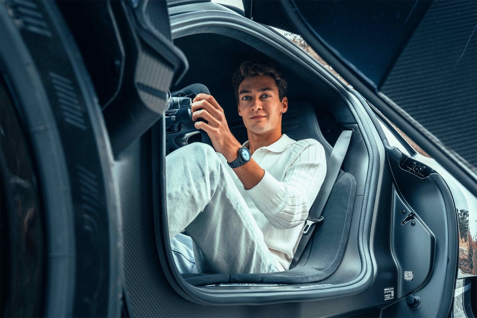 George Russell customises a one-of-a-kind IWC Ingenieur Automatic 42 with Bamford Watch Department and picked a dial colour that matches his eyes.