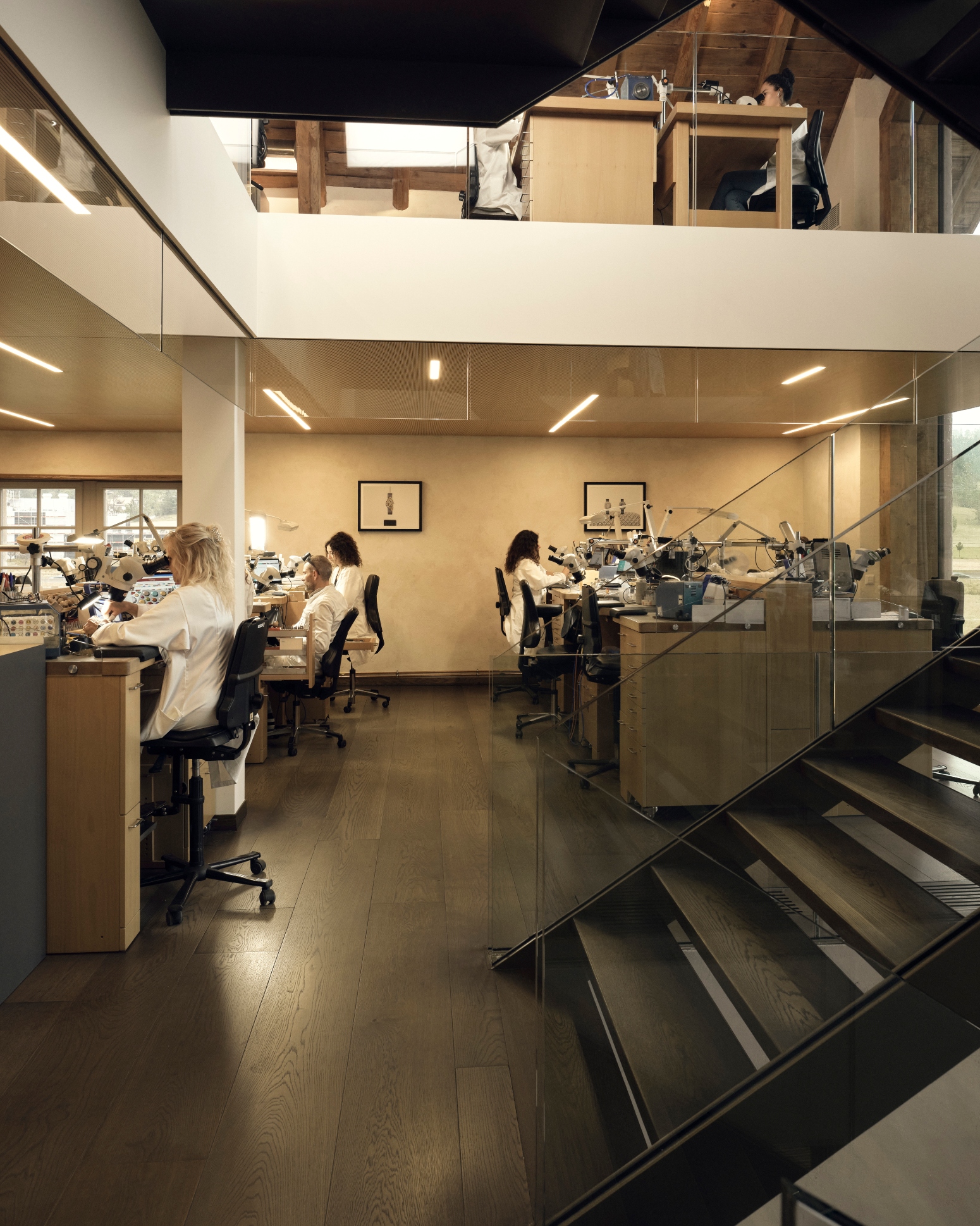 Ref. 5077/100G models, as seen here. The technique begins with a layer of coloured enamel that is first fired to set it. Upon this layer, the paillons are positioned, before translucent enamel is applied and fired, thus “locking” the paillons in. Additional steps can be taken to create even more intricate designs. Before the coloured enamel layer is applied, for instance, the substrate surface may first be decorated with guilloché, which basically creates flinqué enamel that is then decorated with paillons over it. Alternatively, the substrate surface can be hand engraved – there are no hard and fast rules to this.
