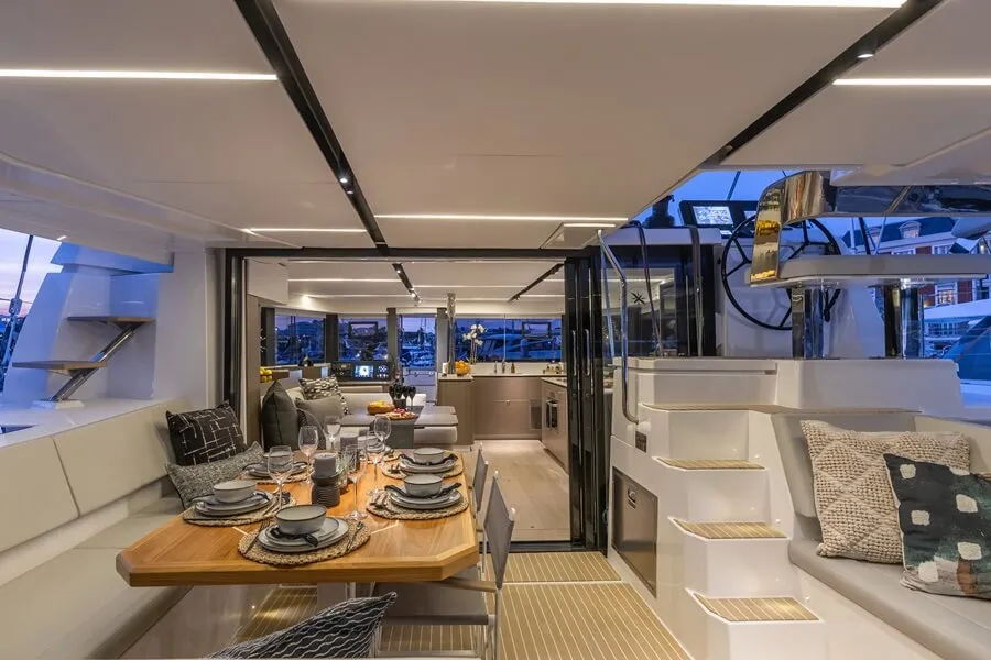 With a refined layout that provides a seamless integration between the aft cockpit and saloon, the spacious-yet-sporty cruising catamaran offers plenty to help those on board enjoy their voyage.