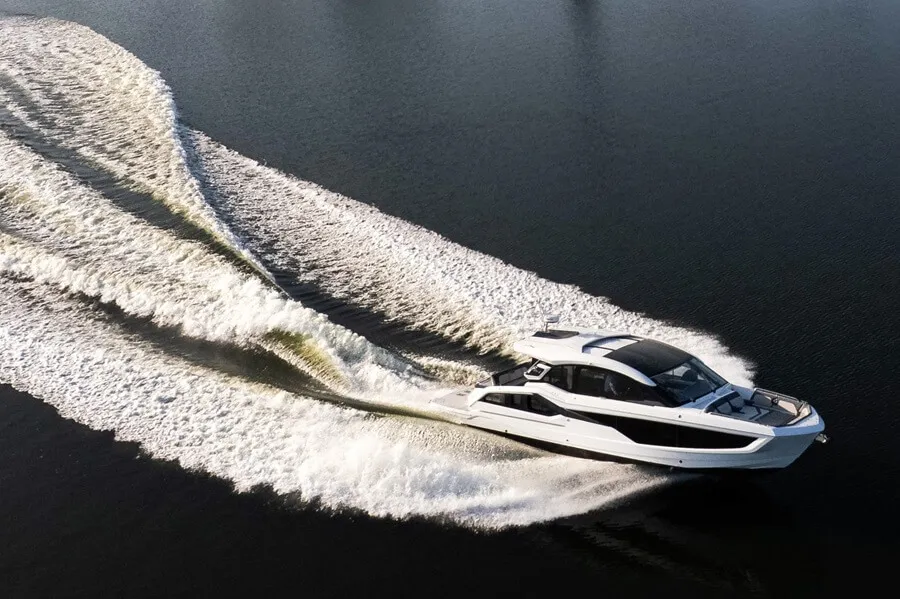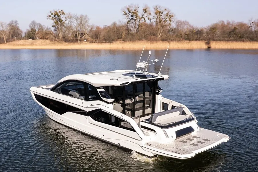 A world premiere at Boot Düsseldorf 2025, the Galeon 435 GTI model is the twin-inboard version of 2024’s 435 GTO (Grand Touring Outboard). Due to their streamlined designs and seaworthy handling, the 435 GTO/GTI models won the Motoryacht 13-15m category at this year’s Yacht Style Awards, held on the eve of the Singapore Yachting Festival in April.