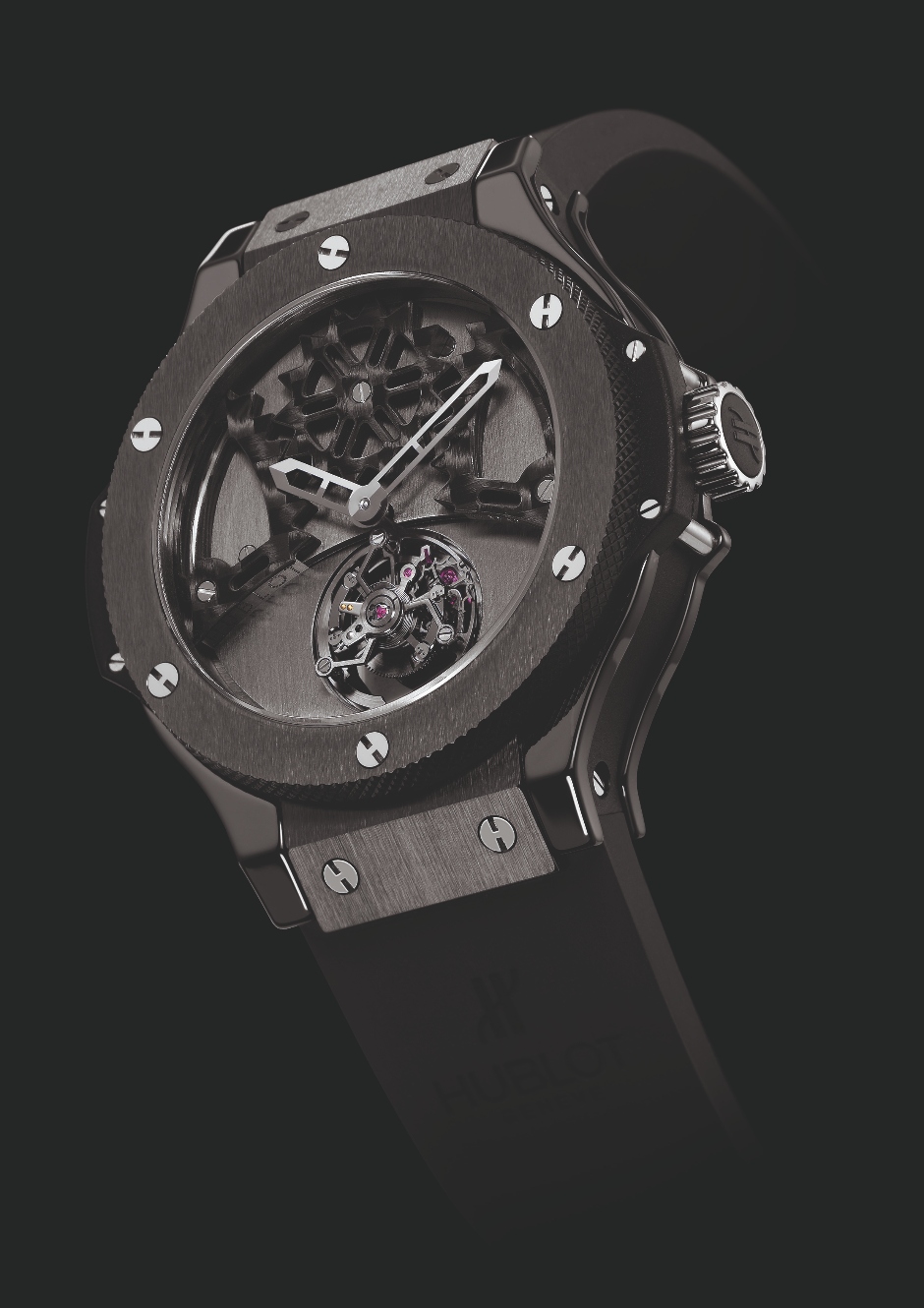 advances, our approach to fusion extends to all aspects of the watch: movements, dials, straps, and even manufacturing techniques. Each component is an opportunity to innovate. For example, carbon fibre, now emblematic in our creations, was already present inside our watches as early as 2007. The Bat Bang Tourbillon All Black model, produced in 50 pieces, marked a world-first by integrating this revolutionary material. This example illustrates our ability to anticipate trends and push the boundaries of traditional materials.