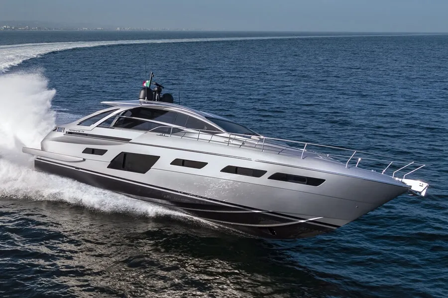 Focused initially on sailing boats and refits, the shipyard’s breakthrough came in 1985 when its founders began working with Italian designer Fulvio De Simoni on a line of powerboats they called ‘Pershing’. Yes, that’s Pershing as in the US Army’s former nuclear-capable ballistic missile, named after General John J Pershing. The brand implies performance, power and cutting-edge technology.