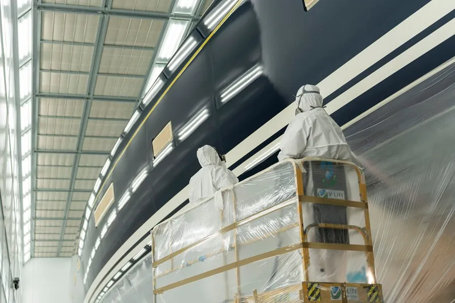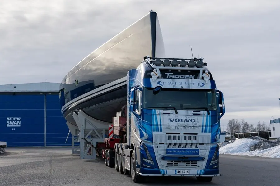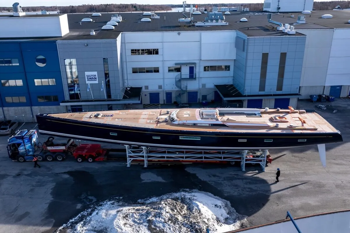 The Finnish shipyard, acquired by Sanlorenzo in 2024, shared recent production updates on the first unit, showing photos of the hull being painted and exiting a shed at the Boatbuilding Technology Centre in Pietarsaari on Finland’s west coast.