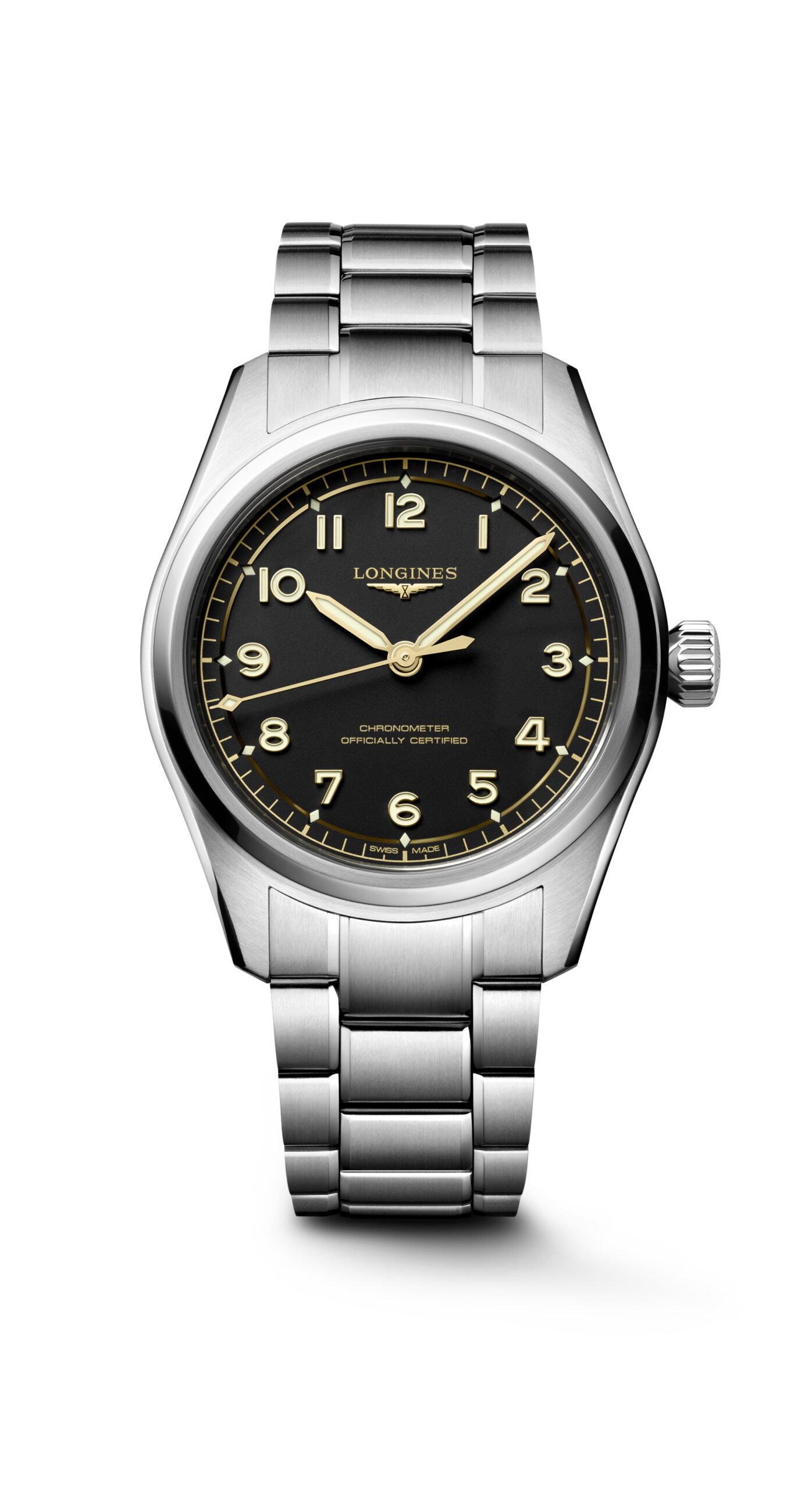 The centenary of the Zulu Time lands alongside two other Spirit releases that broaden the pillar. The Spirit Pilot three-hander is a streamlined expression of the pilot’s watch idea. The stainless steel case measures 39mm and the profile is svelte enough (11.5mm) to sit easily under a cuff. The dial removes distractions and emphasises legibility with gilt hands and numerals against a matt black surface. Inside is the calibre L888.4, a self-winding movement with a silicon balance spring and a power reserve of about 72 hours. The model is chronometer-certified, and the construction now employs a screw down caseback for improved protection. Strap options include a stainless steel bracelet (we know, not a “strap” but forgive us this trespass), brown leather with micro adjustment, and a green rubber option that evokes modern flight gear. The model is offered in the following references: L3.809.4.53.6 (stainless steel bracelet), L3.809.4.53.2 (brown leather), and L3.809.4.53.9 (green rubber).