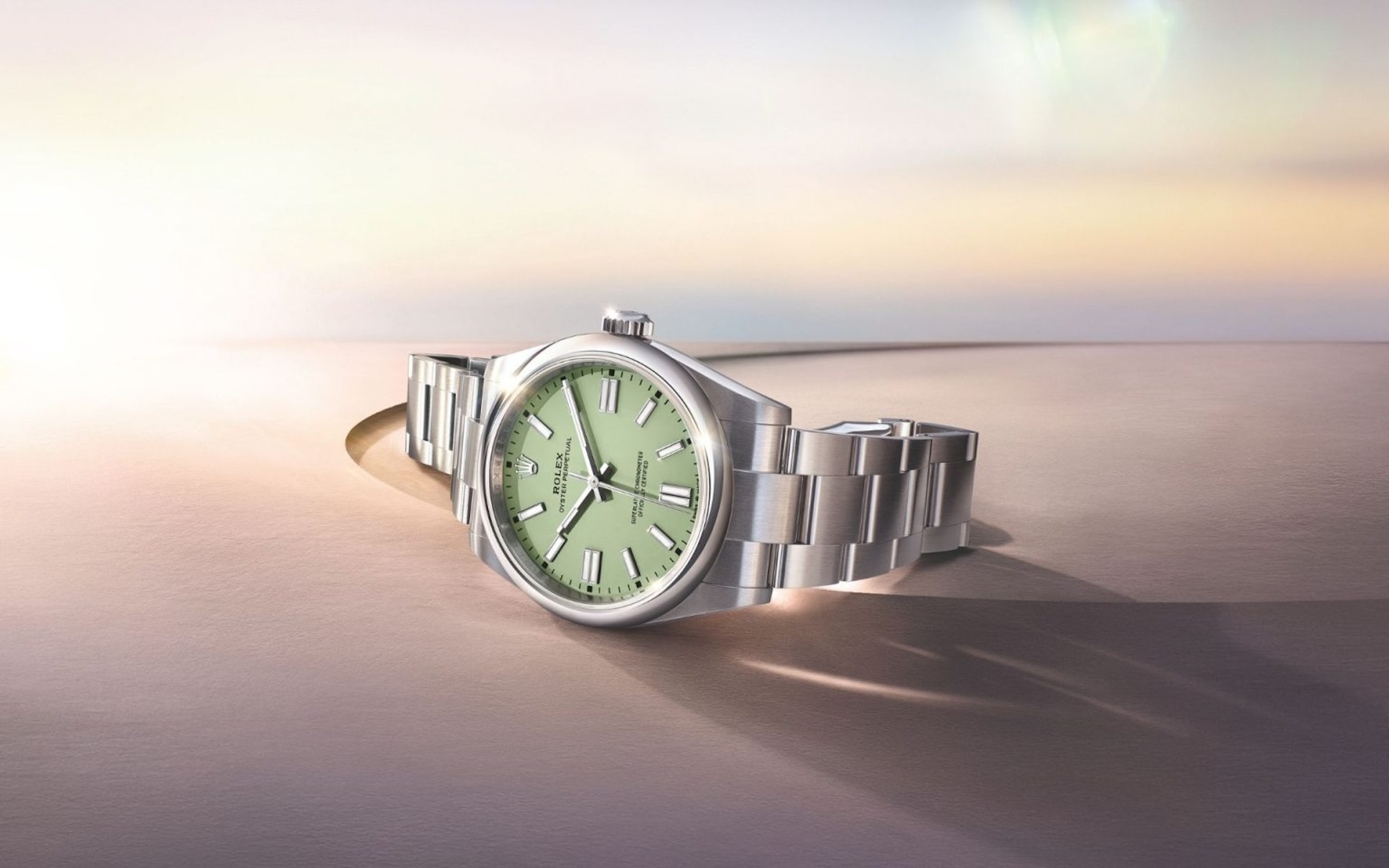 Pastel pistachio joins lavender and sandy beige in Rolex’s most playful dial series yet. Set on the largest 41mm model, this dial features a fresh matte finish, achieved through meticulous lacquer layering in a contamination-free environment—a texture not found anywhere else in Rolex’s current offerings.