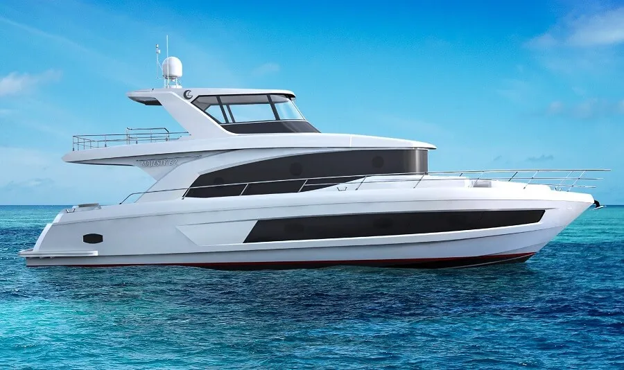 The Majesty 62 Maldives, Gulf Craft’s latest luxury yacht, will be making a prominent debut at the Singapore Yachting Festival. Designed with Southeast Asia’s tropical climates in mind, this elegant yacht features a spacious layout and a refined aesthetic. Building on the classic Majesty 62, the Maldives version boasts a redesigned superstructure with a vertical windshield and a flybridge housing the yacht’s sole helm station. This change has significantly expanded the main-deck saloon, providing an enhanced social space, ideal for gatherings or luxurious cruises around the region’s islands. With an overall length of 61ft 7in, the Majesty 62 Maldives offers a beautifully split-level interior, including a full-beam master suite and a VIP cabin, each with en-suite bathrooms.