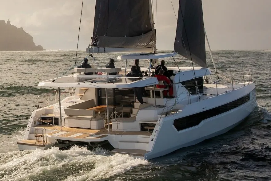 One of the standout features of the Leopard 46 is its hybrid electric drive, powered by a combination of solar panels, high-voltage lithium-ion batteries, and a range-extending generator. With the ability to generate over 8 knots in speed and up to 1.8kW per hour of regeneration, this catamaran offers sailors the perfect balance of performance and sustainability. Whether you’re cruising for leisure or embarking on a long-distance voyage, the Leopard 46 is designed to ensure a comfortable and eco-friendly experience on the water. Crafted by South Africa’s renowned Robertson & Caine, the Leopard 46 features a stepped hull design and powerful rig with overlapping genoa for optimal handling in all wind conditions. Whether you’re a seasoned sailor or new to the waters, the protected helm station makes single-handed sailing or long-distance cruising a breeze. Additionally, for watersports enthusiasts, there is an optional lifting tender platform that ensures easy access to the water for leisure activities.