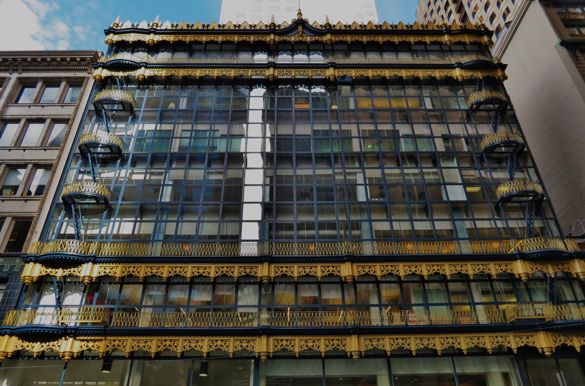 A pioneering iron-and-glass curtain wall structure, the Hallidie Building is considered one of the world’s first modernist glass facades, setting the stage for contemporary high-rises. As one of the first to incorporate an iron-and-glass curtain wall, the Hallidie Building stands as a pioneering example of modernist design, shaping the skyline of San Francisco. This architectural breakthrough set the foundation for the glass-and-steel skyscrapers that would come to define the 20th century. Its transparent façade offers an early glimpse of the open, airy spaces that would become standard in contemporary office buildings.