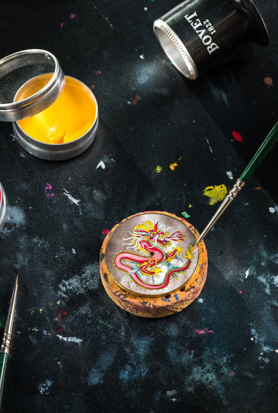 But it is the decorative arts that catapult Bovet watches into a class of their own. The Château de Môtiers and Tramelan facilities are home to master artisans who practice centuries-old crafts of hand-engraving and miniature painting. In the first instance, it is Bovet’s signature “Fleurisanne” engraving, with its intricate floral motifs, that adorns bridges, plates, and cases in a dazzling display of skill. As elsewhere, miniature painting sees the use of impossibly fine brushes, with artisans spending hundreds of hours creating detailed scenes. These can be on mother-of-pearl or enamel dials, often replicating famous works of art or crafting bespoke commissions for clients.