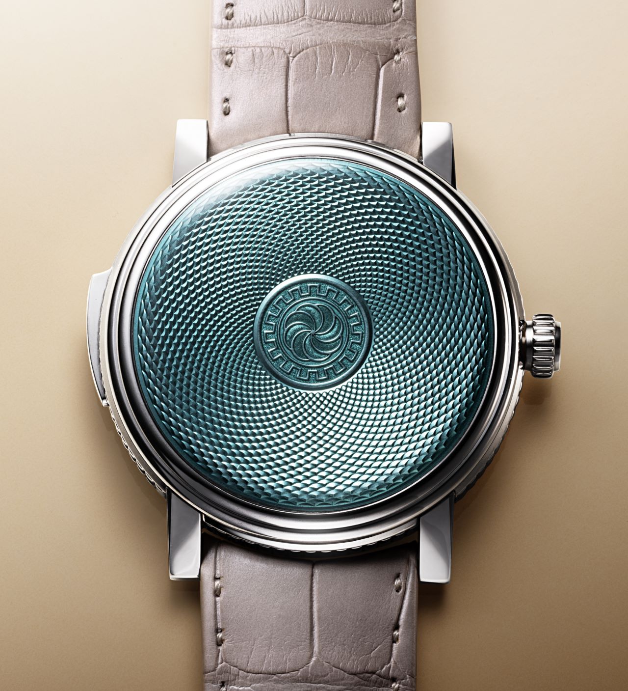 To honour the legacy of Michel Parmigiani, Parmigiani Fleurier has unveiled “L’Armoriale Répétition Mystérieuse” — a limited series of five haute horlogerie masterpieces that reframe the very notion of timekeeping. This exceptional minute repeater is designed to engage sight and sound in equal measure. Rather than displaying time on a conventional dial, it conceals it beneath layers of ornate craftsmanship. A pastel green enamel dial, marked by a guilloché motif inspired by Fibonacci spirals, serves as an aesthetic façade. Hidden beneath, a disc of Guatemalan white jade reveals the actual time — visible only on the reverse, where delicate rose gold hands move across a tranquil surface. In this way, the act of reading time becomes deeply personal, requiring deliberate interaction.