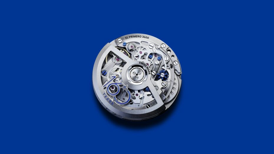 At its heart lies the El Primero 3600 calibre. This high-frequency calibre beats at 5Hz; the central chronograph hand makes a full rotation every 10 seconds, slicing time into 1/10th-of-a-second segments. The timepiece has a water resistance of 10m and has a power reserve of 60 hours.
